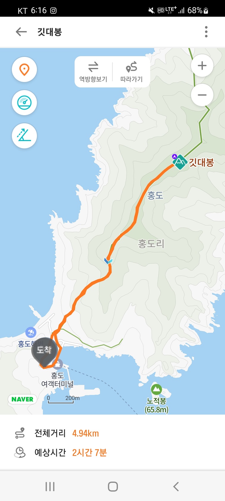 산행코스 : 홍도 선착장~깃대봉 왕복