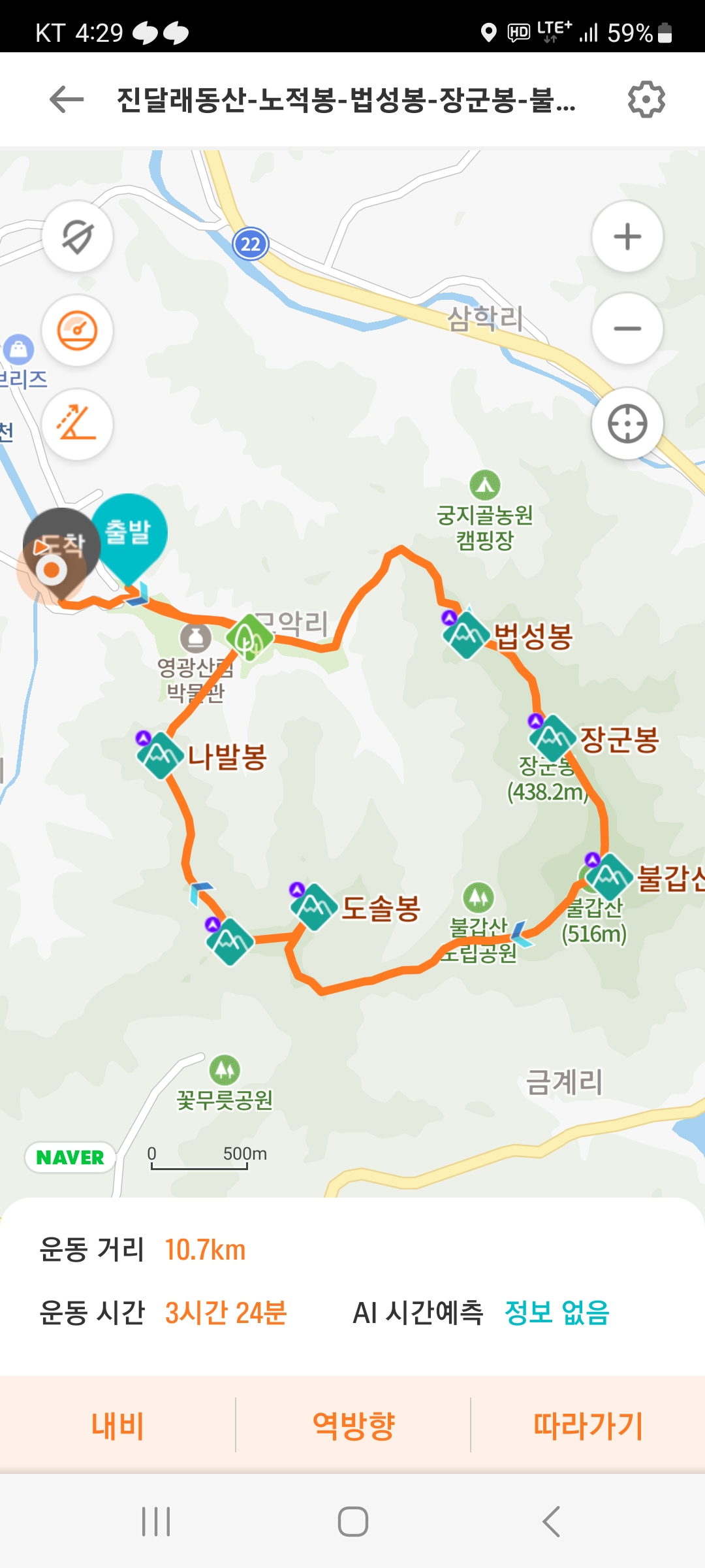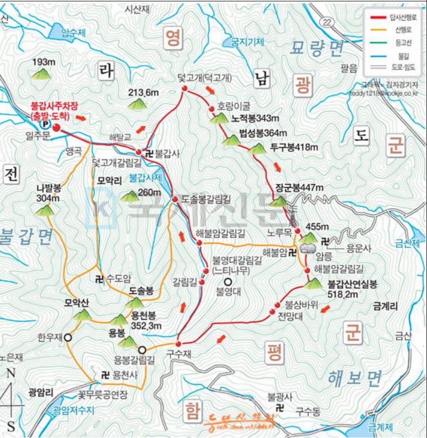 산행코스 : 주차장-불갑사-덫고개-투구봉-장군봉-노루목-연실봉-구수재-용천봉-도솔봉-나발봉-주차장